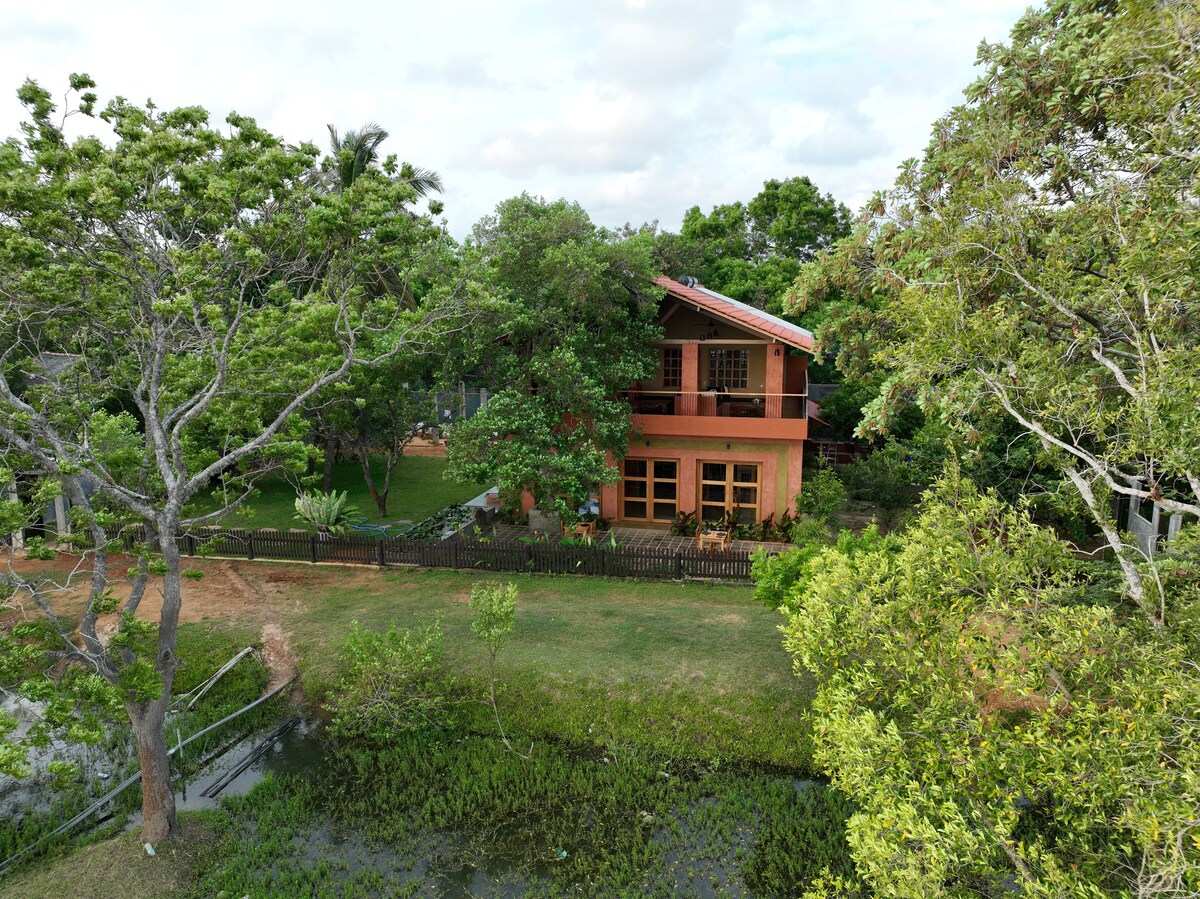 Situada en un petit poble de Kirinda, a només 20 minuts del Parc Nacional de Yala, Neem Tree House és una vil·la immaculadament dissenyada situada a l'arbre de Neem Trees. Amagada de la ruta turística, la nostra elegant vil·la té vistes a un llac serè que atrau molta fauna salvatge. Permet-nos mimar-te amb els nostres deliciosos àpats cuinats a casa i el servei de neteja diària. Només has de relaxar-te i beure als voltants. S'hi inclou un esmorzar deliciós. Estarem encantats d'organitzar un safari si és necessari.