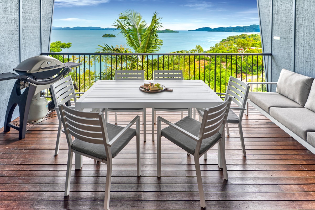 Take a break & unwind at this peaceful island retreat. Fully renovated (August 2023) modern 1 bedroom fully self contained apartment perfect for couples with views of the Whitsunday Passage. Sunsets are spectacular! Bedroom - king size bed & 2 balconies. Brand new modern kitchen & laundry. Comfortable 3 seat electric recliner lounge with tv and netflix subscription makes evenings a time to relax and unwind. BBQ, dining & deck chairs on the balcony draw you out to a tropical paradise.