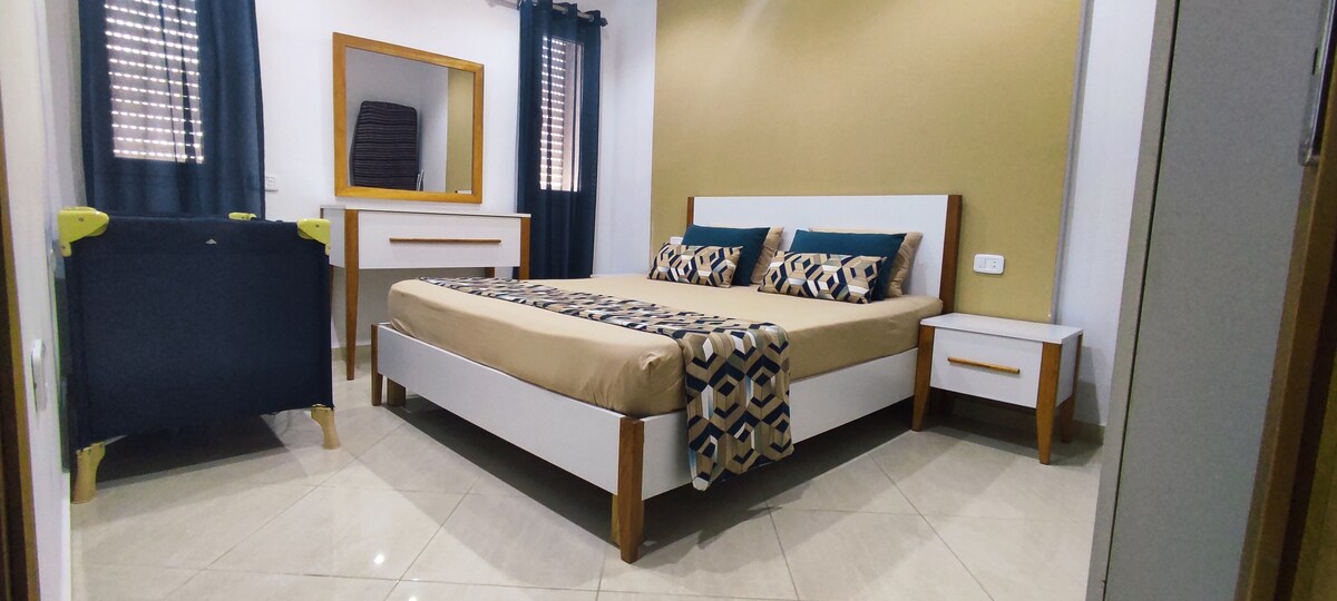 un bonic s+2 a la planta baixa amb una entrada independent. L'allotjament es troba a Cité Erriadh (a 500 de la platja de Marsa a peu i a 10 minuts en cotxe del Petit Paris el Mansoura) consta de: - una sala d'estar gran, ben moblada i amb aire condicionat, - 2 dormitoris, - un bany, - una cuina totalment equipada (no cal que portis res), - una zona de menjador. - accés independent, porxo i accés en cotxe. el pis està ben ventilat i està situat en una bona zona.