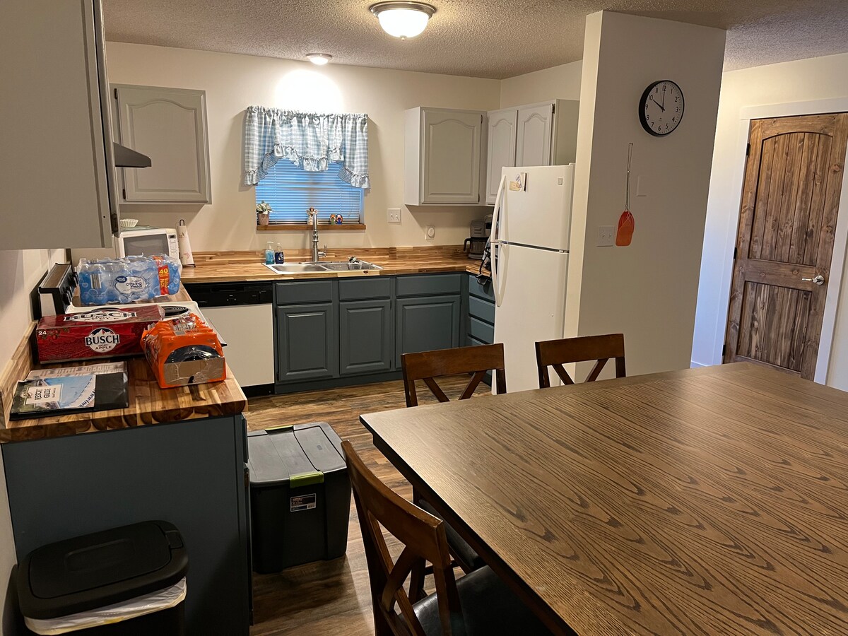 Relaxa't amb tota la família en aquest allotjament tranquil. Gaudeix d'un dia al parc aquàtic o juga a peu a poca distància a peu. O et trobaràs a la platja del llac Mark Twain, a pocs minuts. No tinguis un vaixell... No hi ha cap problema, el port esportiu Black Jack està a 5 minuts de la carretera i ofereix lloguers diaris per pescar, esquiar o simplement gaudir d'una mica de temps a l'aigua. Aquest apartament de 2 dormitoris i 2 banys ofereix un llit doble i un llit complet en un dormitori amb un llit «queen size» al dormitori principal i un sofà seccional.