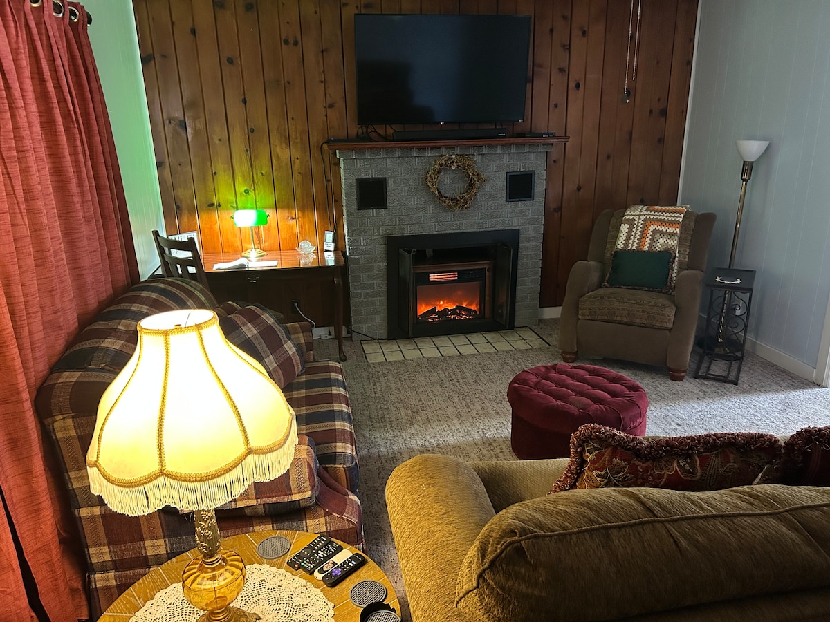 Escape to Patricia’s Cottage for a peaceful winter retreat by the lake. Perfect for couples, families, hikers, or anglers, this warm and welcoming cottage offers a private dock, a nearby neighborhood boat ramp, and easy access to the state park beach and scenic winter hikes. After a crisp day outdoors, gather around the wood-burning or propane fire pit, watch the neighborhood deer wander by, and soak in the quiet charm of the season.