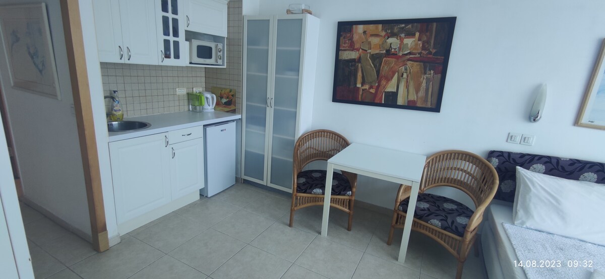 Durant un període curt de temps, el pis:saló+ cuina a 13 metres i dormitori a 8 metres: al sofà llit del saló Es poden col·locar en 2 llits separats. Al llit del dormitori 140×200. Un lloc acollidor en un aparthotel just a primera línia d'aigua. Vista al mar. A 15 minuts a peu de la platja. Al supermercat de l'hotel les 24 hores. Al restaurant de l'hotel.,Cafè. L'apartament disposa d'internet, televisió per cable i aire condicionat a cada habitació. Un lloc únic al centre de la ciutat, a la vora del mar.