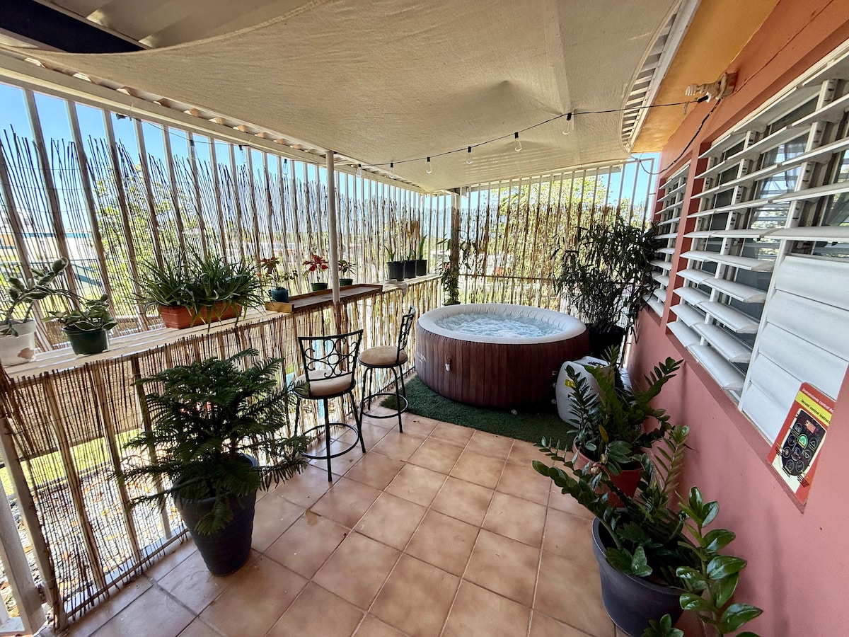 Escape to Blue&Green View, a private retreat in Arecibo perfect for solo travelers, couples, or a small family. This cozy apartment features a king bed and a private back patio with your own hot tub and BBQ. Your host, a local expert and certified lifeguard, can arrange unique adventures. Ideal for a 3-7 day getaway, this space offers a unique and safe way to explore Puerto Rico.
