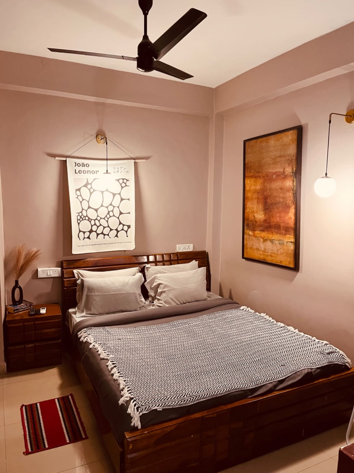 ➽ Ampli apartament d'1BHK amb pati annex, totalment climatitzat. Totes les habitacions disposen de aire condicionat d'1,5 tones. ➽ Propietat orientada al sol en un barri d'alts ingressos, obert a tres costats, orientat al parc i ben ventilat amb molta llum natural i aire fresc. Projector ➽ de gamma alta amb barra de so de 25W i Amazon FireStick amb aplicacions Ott. ➽ Cuina totalment equipada amb elements bàsics per cuinar pràcticament. ➽ Relaxa't al impressionant pati amb terrassa privada amb llums ambientals i un sistema Foger únic per refrescar el pati