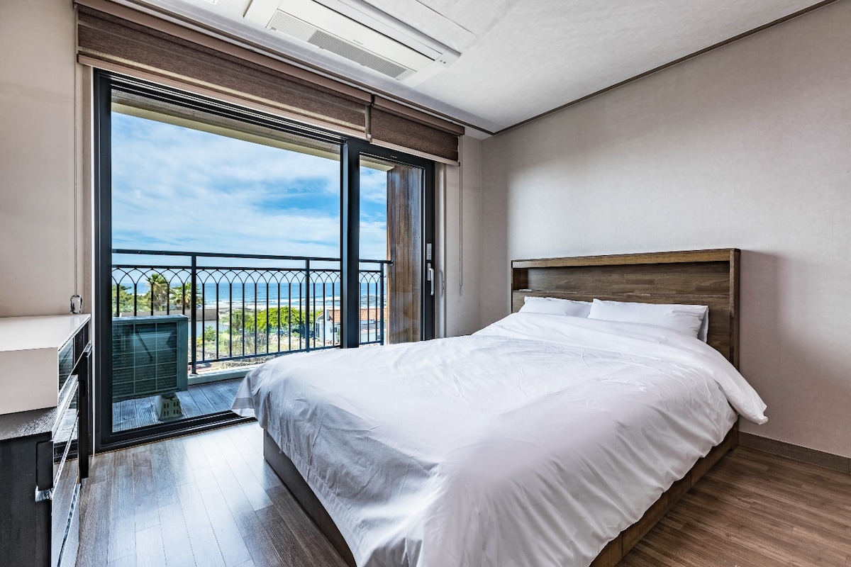 Daepyeong, un poble costaner acollidor sota el Gunsan Oreum, és la raó per la qual molta gent ve aquí a causa dels penya-segats i les fantàstiques vistes del mar de Jeju. Els aplausos i les vistes al mar des de la finestra de l'habitació són una curació emocional en si mateixa. La carretera apartada del poble de Daepyeong-ri, un poble on vols viure, i un passeig al costat del mar durant la posta de sol seguirà sent un record meravellós del teu viatge. Els llocs d'interès que hi ha a prop inclouen el passeig marítim (Olle Trail), que es troba a 3 minuts a peu de l'allotjament. És un passeig amb bells penya-segats i postes de sol anomenats Park Soo-gi-jeong. Andeok Valley, Gunsan Oreum, Jungmun Tourist Complex, Jungmun Color Moon Beach, Sanbangsan, Songaksan, Saga Walk, Camellia Hill, Osulloc, el museu principal i l'església de l'Arca i la ciutat de Seogwipo es troben a menys de 30 minuts en cotxe.