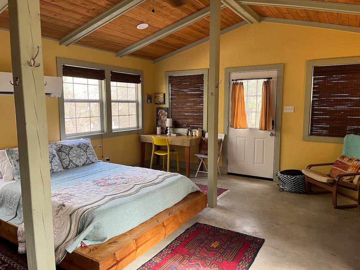 Relaxa't en aquesta suite independent privada d'1 llit i 1 bany amb entrada pròpia i aparcament fora de la carretera. Camina fins a la Universitat Estatal de Texas o gaudeix dels restaurants, bars i locals de música del centre de San Marcos. Perfecte per a una estada relaxant de vacances, de negocis o de visita amb el teu estudiant (saps que et trobes a faltar!). Els serveis inclouen un llit molt còmode, un carregador per a vehicles elèctrics (tant per a Tesla com per a altres vehicles elèctrics), cafetera, nevera, microones, espai de treball d'escriptori, rentadora/assecadora gratuïtes i wifi.