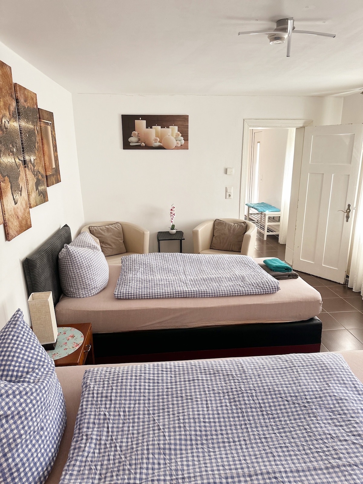 Apartament a l'àtic a 20 minuts amb cotxe de Potsdam i Berlín i a 30 minuts en tren del BER. Espaiosa cuina de disseny * totalment equipada, bany amb banyera Agape Vieques i pica a joc * , dormitori amb llit de 2,70 m * , gimnàs es pot utilitzar com a segona zona de dormitori. Aquí tens un projector de llit doble d'1,80 m amb preinstal·lació de l'aplicació per a NETFLIX, Disney + i Amazon Prime Login, joguines, supermercat amb fleca i mercat de begudes de carnisseria * llacs i senderisme