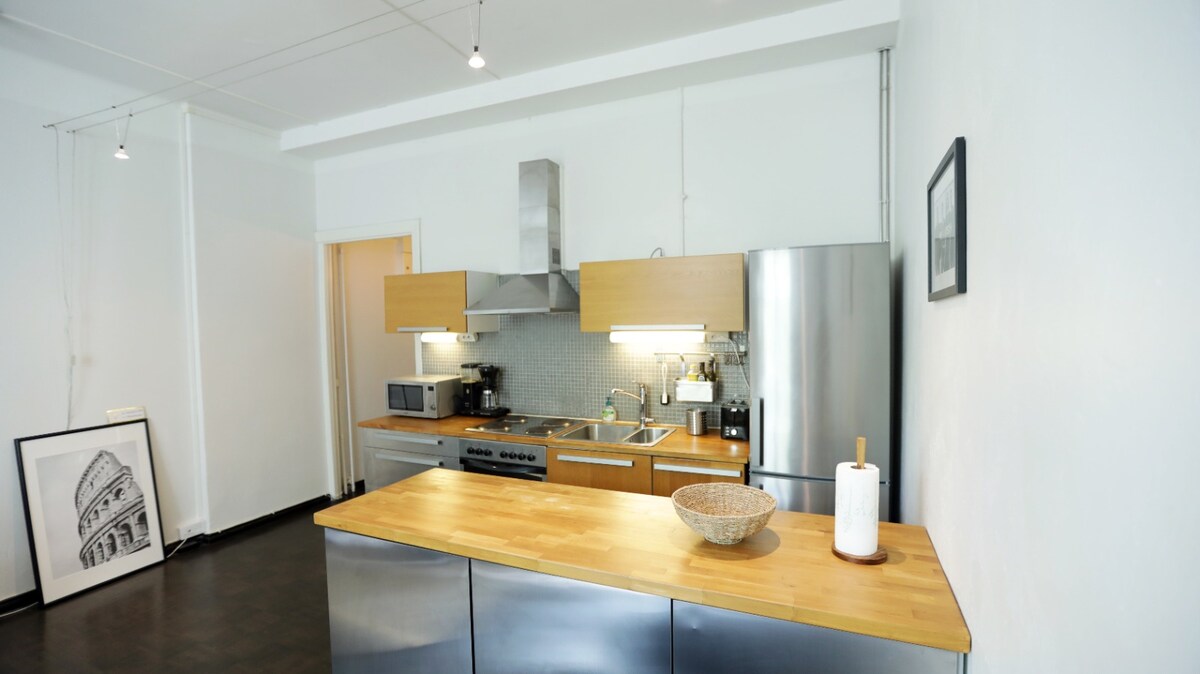 Aquest espaiós apartament estudi moblat disposa de colors càlids i una cuina oberta totalment equipada. Aquest estudi és adequat per a estades curtes i llargues amb un disseny espaiós, grans finestres d'estil Jugend i molt d'espai a l'armari. Aconsegueix coses pràctiques, com ara una cuina totalment equipada, rentadora, wifi ràpid, assistència les 24 hores i neteja professional habitual, i coses divertides, com ara un televisor intel·ligent. Allotja't amb comoditat durant el temps que vulguis: dies, setmanes o mesos.