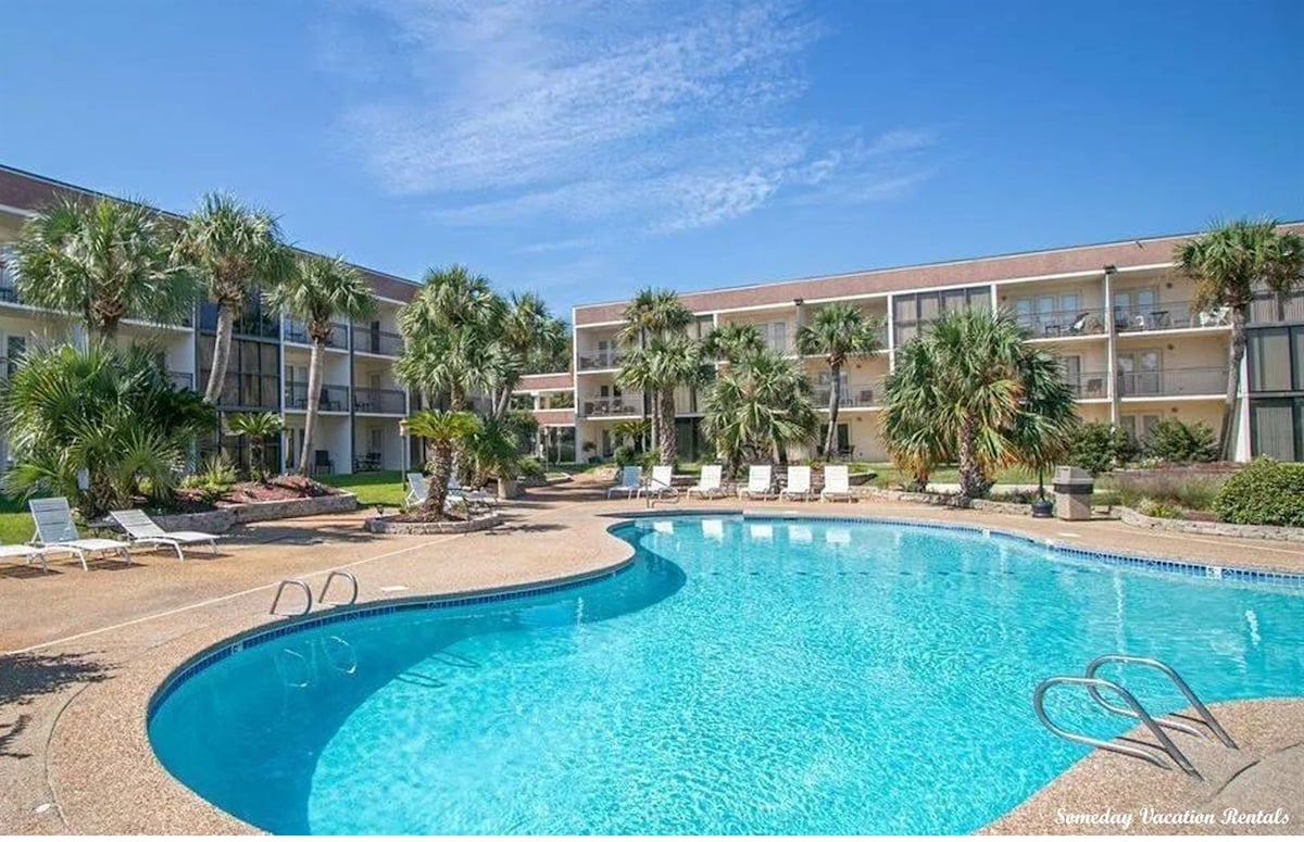 8è pis, apartament de 2 dormitoris i 2 banys que es troba directament a la platja de Seabreeze. Relaxa't al teu balcó privat amb vistes a la preciosa costa del golf. Televisors de pantalla plana, cable, wifi a tot arreu. Dormitori principal amb llit king, finestres del terra al sostre amb increïbles vistes al golf i bany privat amb banyera d'hidromassatge gran. 2n dormitori amb bany queen i bany privat. Cuina totalment equipada, menjador i rentadora/assecadora de mida completa. Serveis de Seabreeze: 2 piscines a la platja, gimnàs, sauna i zona de barbacoa.