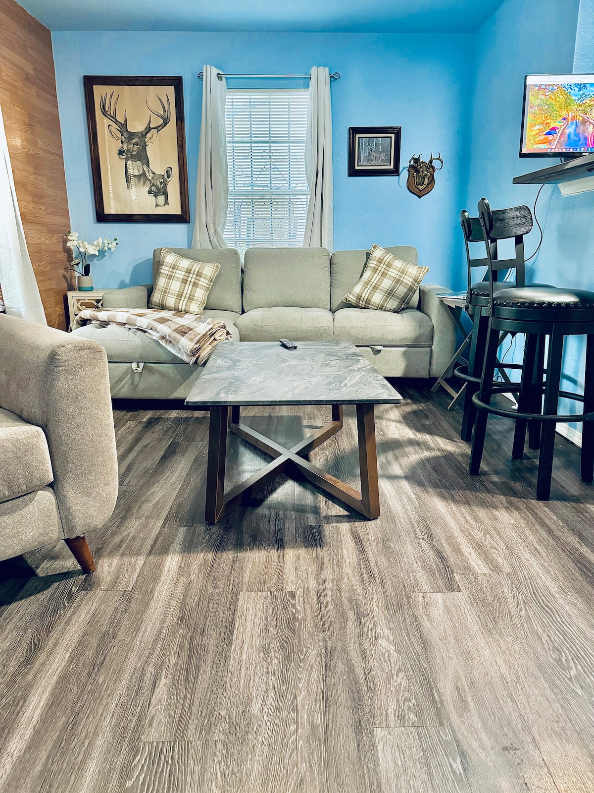 Welcome to our Gated Modern-Upscale Medical Center Retreat with dedicated parking space! A luxury home, well furnished, vibrant, and an entertaining living room with opulent and cozy bedroom space, well-placed furniture, and living essentials. Centrally located near Six Flags Fiesta Texas, SeaWorld, Downtown & multiple shopping centers to include La Cantera shopping center, restaurants, Texas bar & grills, & much more. Wheelchair accessible, first floor with dedicated/reserved parking space.