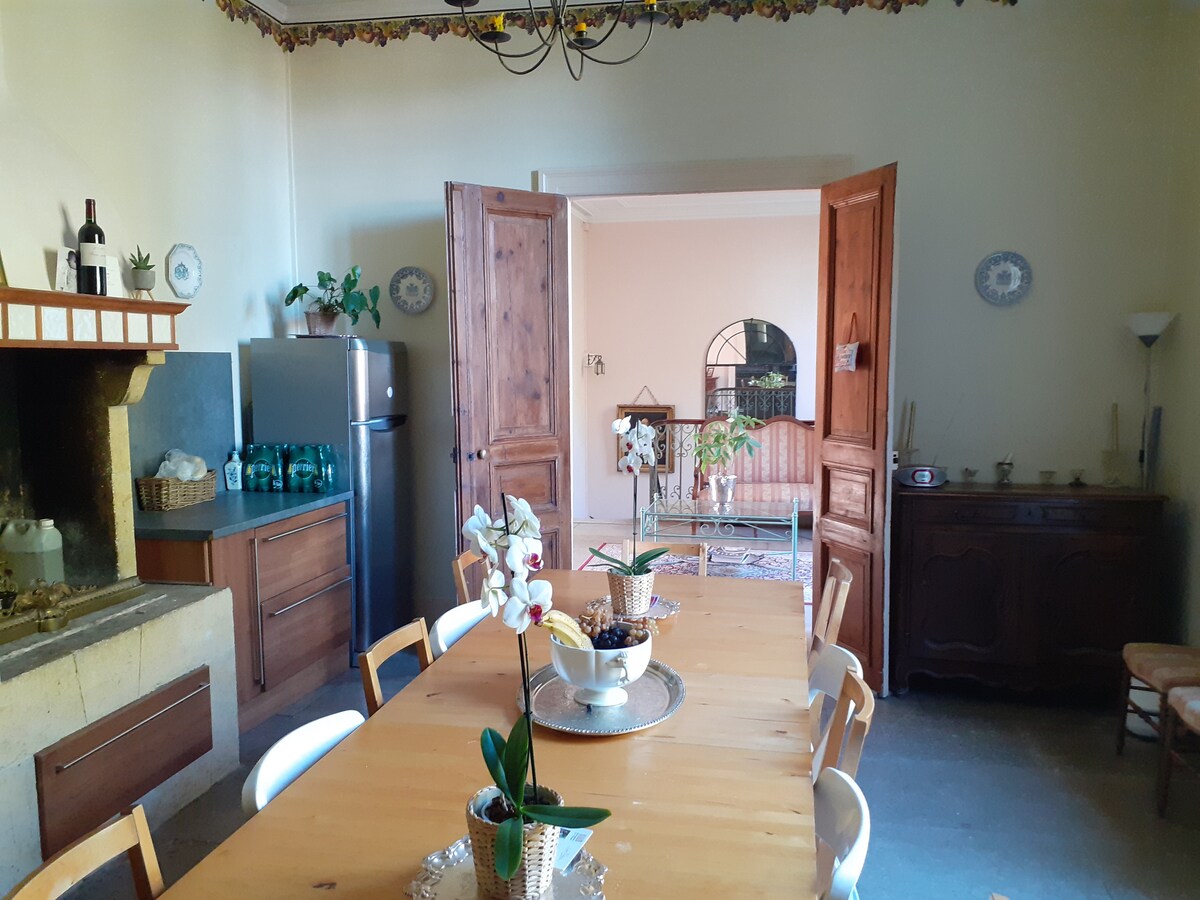 Casa situada a l'ala dreta del Château d'Aubais, segle XVII, amb unes magnífiques vistes panoràmiques del Pic St Loup, la garriga i els teulats del poble 1r i: dormitori doble, cuina equipament i taula de menjador, bany, vàter separat, bugaderia Pati exterior amb gran taula de menjador, planxa, piscina de 2*3,50 m 2a planta: 2 habitacions grans, una amb hamaca i una amb bany privat Ventil·lums en els dos dormitoris amb llit doble Pati amb un volum molt gran en alçada disposat en terrasses equipades