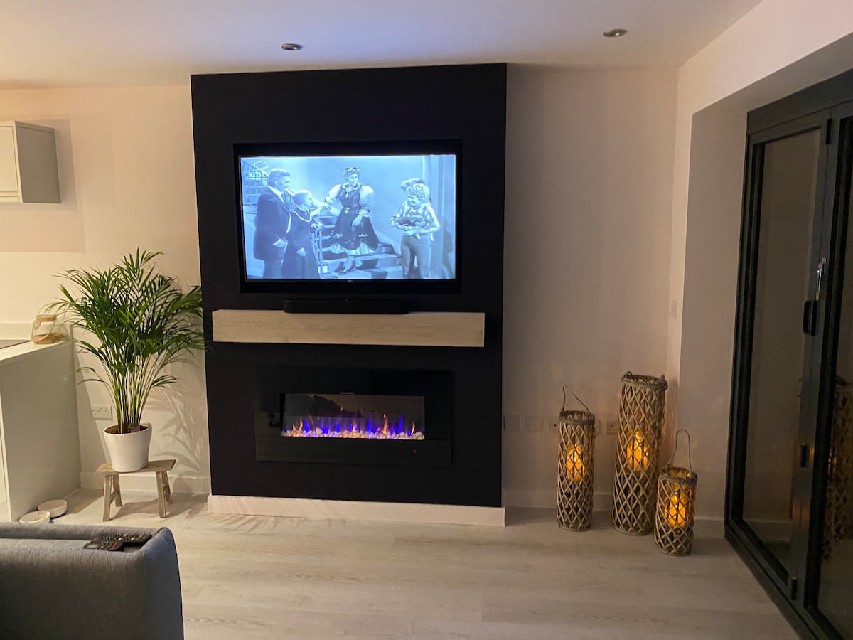 Gaudeix de la teva estada en aquesta encantadora caseta al final del nostre jardí. El nostre jardí té 140 peus de llarg, per la qual cosa és encantador i tranquil. La propietat consta d'un saló/cuina/menjador, bany i dormitori doble. Amb prou espai per a una família de 4 persones per gaudir cuinant un sopar nocturn, hi ha una taula de menjador, un televisor de pantalla plana de 55 polzades. Aquesta habitació té un sofà llit doble. Hi ha un bany independent amb dutxa, vàter i pica. El dormitori doble té un armari, un tocador, un tamboret, un assecador de cabells i un televisor de 50 polzades.