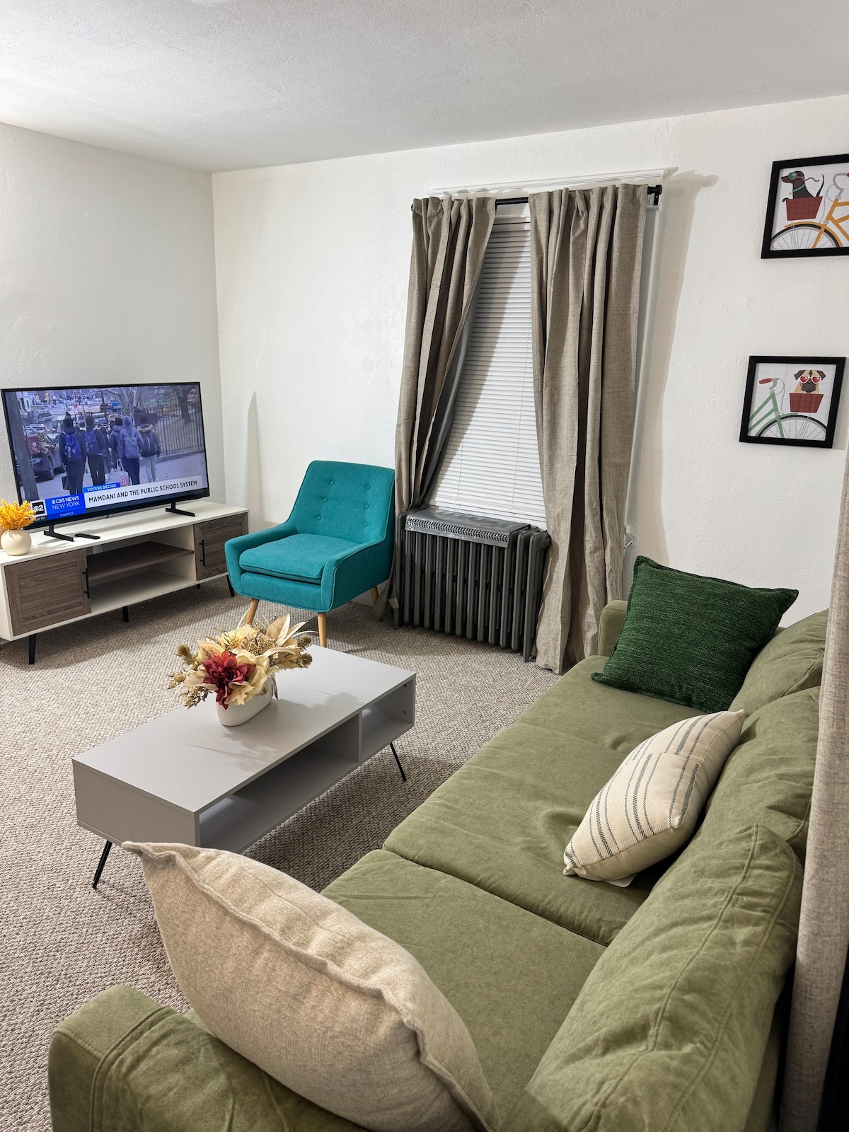Vine i gaudeix d'una estada acollidora i còmoda al nostre apartament estudi recentment renovat. La cuina està ben decorada. L'espai disposa d'una zona polivalent que es pot utilitzar per menjar, l'esbarjo i el treball. El teu propi bany complet, que està net al contacte. Televisor intel·ligent de 50 polzades amb accés a internet. El teu propi aparcament privat i entrada. L'apartament és fresc o càlid a la perfecció amb l'última tecnologia de aire condicionat de la unitat dividida. El pis està a uns 7 minuts a peu del tren 2 a Manhattan.