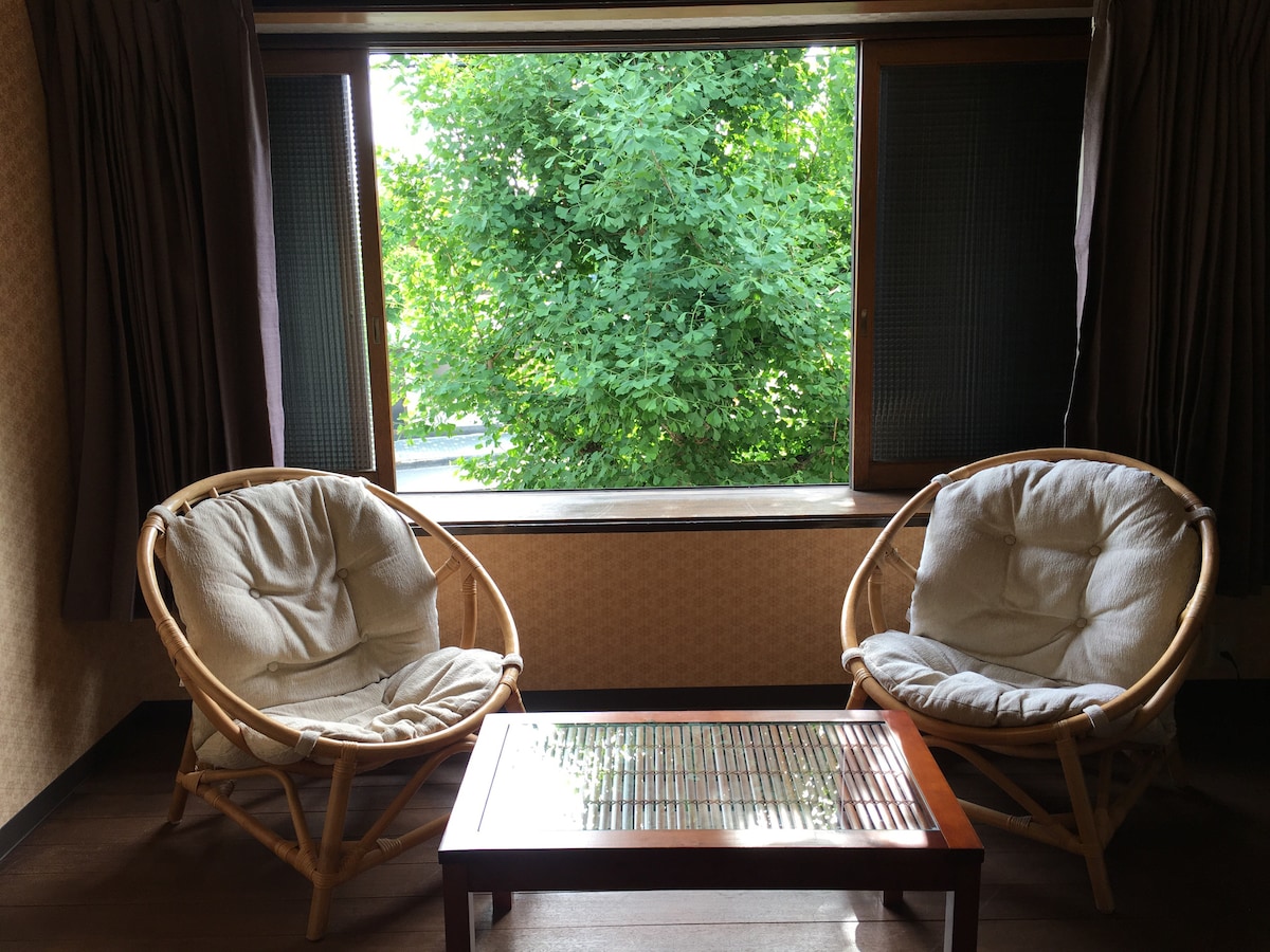 La machiya de 100 anys, bellament remodelada, gaudeix de tot l'encant de l'esperit tradicional i modern del Japó: tatami, portes corredisses de fusta amb partició wa-shi, jardí privat i comoditats modernes seleccionades. Situat a la zona tranquil·la del temple de Chomyo, a només 5 minuts a peu del metro/Keihan Sanjo sta., et prometem una experiència de Kyoto totalment immersiva. També és còmode caminar fins a Gion i el santuari Heian. Supermercats i restaurants increïbles al barri al teu servei.