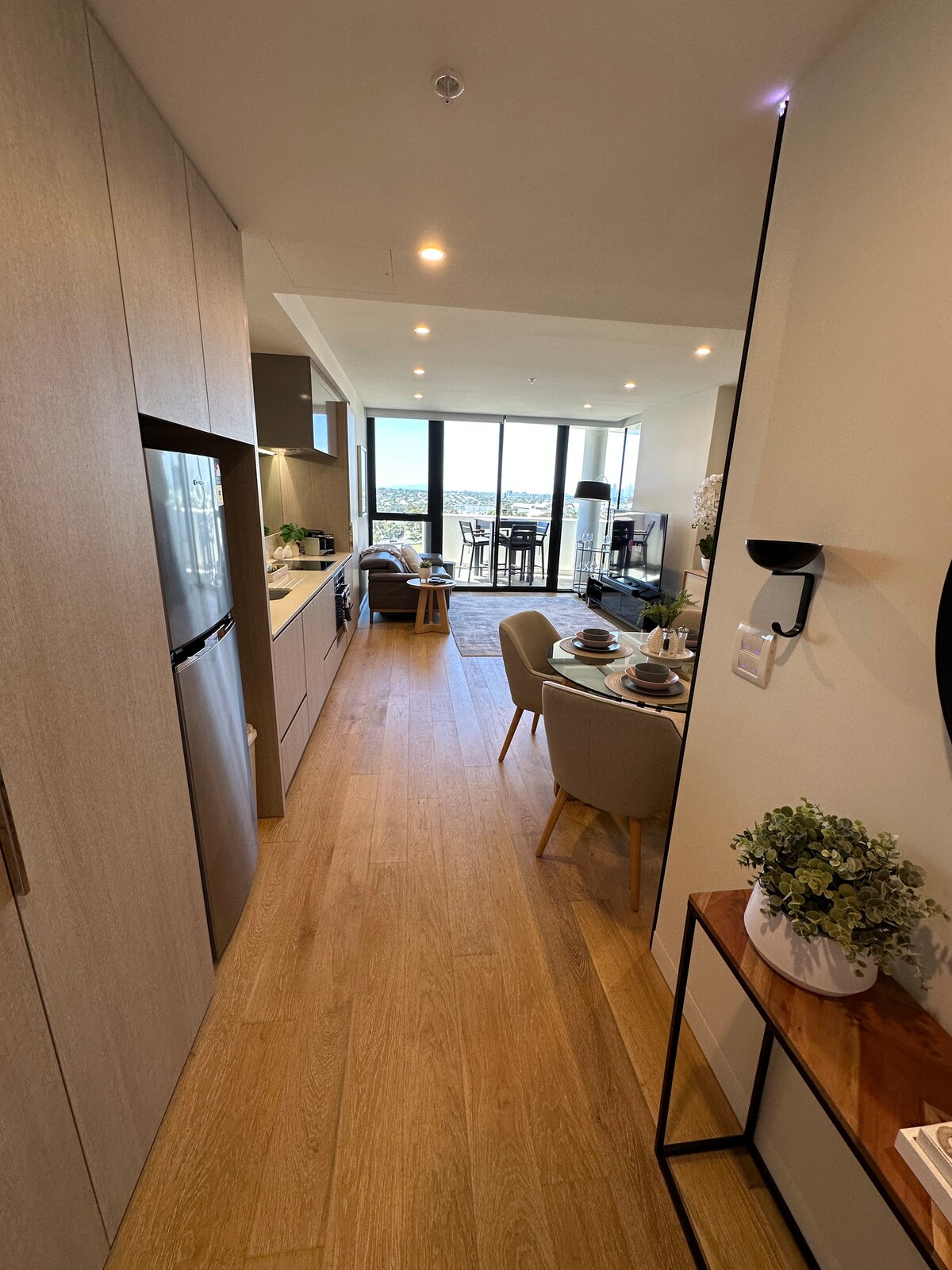 Gaudeix del nostre àtic de 2 llits i 2 banys amb vistes glorioses de la ciutat des de l'impressionant balcó Cuina totalment equipada amb estufa, forn, microones, nevera/congelador, estris, cafè, te i altres elements bàsics Capacitat per a 6 hostes, amb 2 llits dobles grans i un matalàs inflable a petició. - Gran televisor intel·ligent Samsung de 55"i wifi. - Centre comercial Highpoint a l'altra banda de la carretera - Aparcament cobert segur - Rentadora, assecadora i rentaplats.