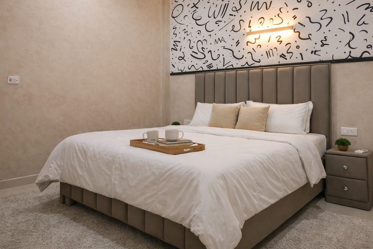 El primer pis de 2 Bhk que compleix tots els requisits ✨ - 2 dormitoris ( dormitori principal, segon dormitori) - 2 llits «king size». - Una sala d'estar espaiosa amb una disposició de seients còmoda. - 2 banys ( 1 a cadascun dels dormitoris) - Cuina petita (amb tots els estris bàsics de cuina disponibles i equipament i serveis, és el lloc perfecte per preparar els teus àpats preferits) - Una zona de balcó compartit que connecta amb l'apartament, que pot ser l'espai perfecte per a les teves passejades nocturnes. Reserva ara!