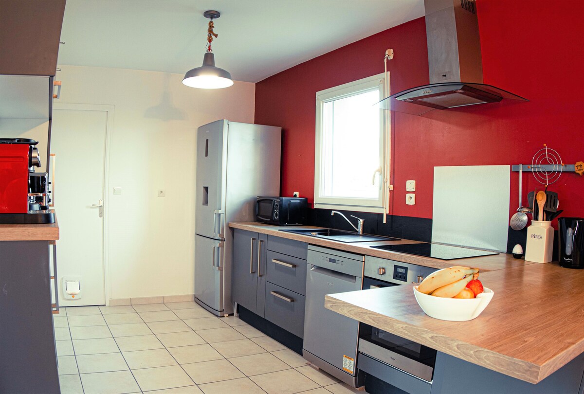 Casa rural discreta a la badia de Mont Saint-Michel, a la vora del mar, classificada com a allotjament turístic moblat de 3 estrelles amb el número 0220503536119-0465 La casa es troba al centre del poble, a prop de botigues. Un pati tancat a la part del darrere, on el sol del matí no arriba i on no hi ha mirades indiscretes, us permetrà gaudir dels àpats amb tranquil·litat. Tens a la teva disposició la barbacoa, la gandula i el mobiliari de jardí. La casa és còmoda i està molt ben equipada.