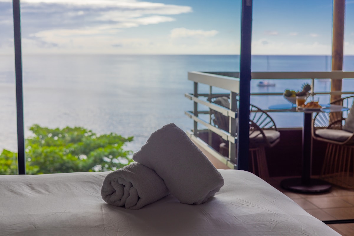 Welcome to this luxurious beachfront Airbnb! An exceptional location with its shaded terrace and spectacular view of Matavai Beach-Arue. It's the perfect setting for a relaxing getaway to the gentle sound of the waves. You can also enjoy the activities at the LeTahiti By Pearl Resorts 4* hotel (access to the pool for two included, hotel sauna and gym, happy hour, restaurant, Polynesian show...). Only 0ne bed, King size bed 200x200, hotel-quality, and large screen TV.