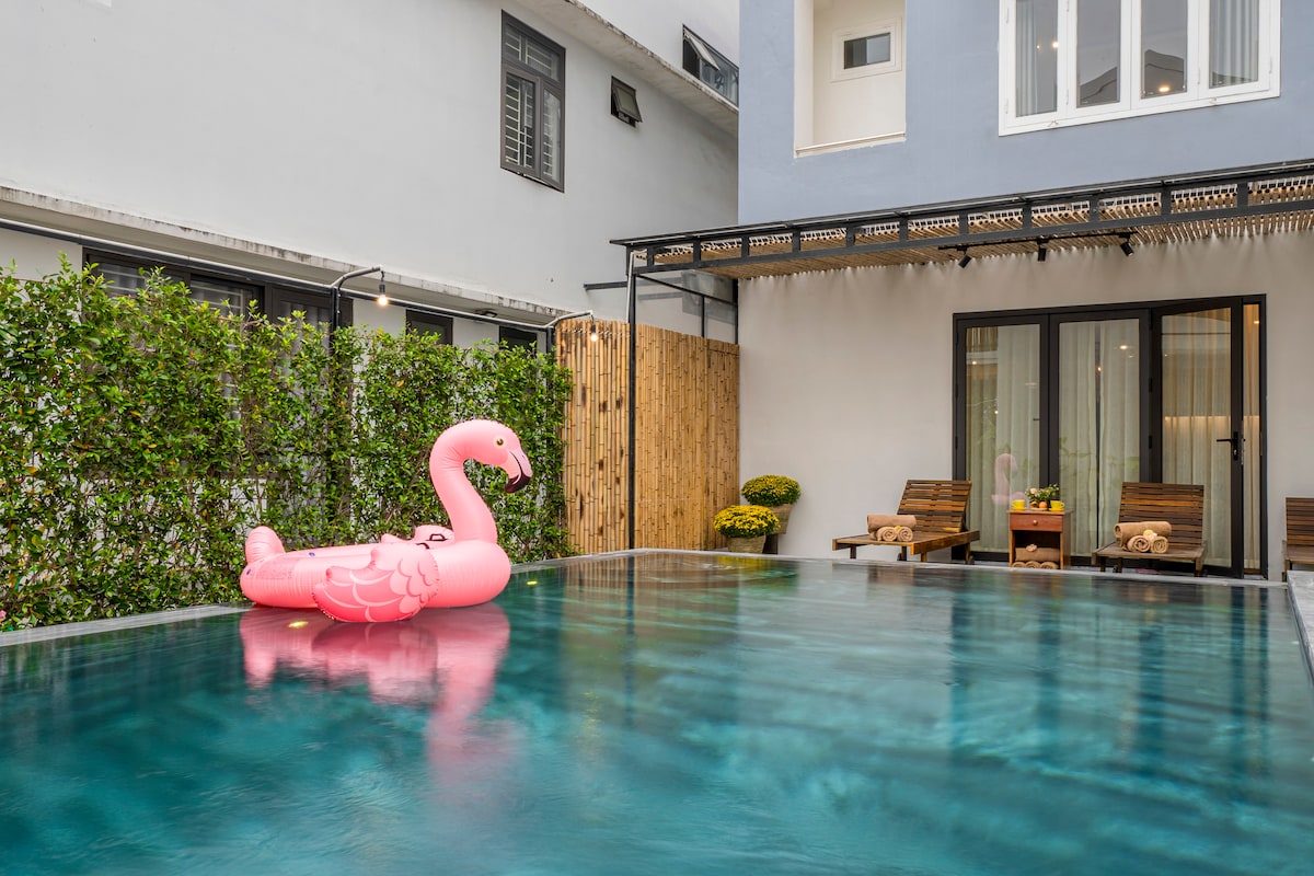 Et dono la benvinguda a Villa Lumora, una joia amagada a només 7 minuts a peu del nucli antic de Hoi An. Aquesta vil·la privada de 4 dormitoris combina l'encant atemporal de Hoi An amb el confort modern i ofereix una escapada serena al cor de la ciutat. Gaudeix de la llum del sol a la piscina privada, relaxa't a la banyera després d'un dia d'exploració o comparteix un àpat a la cuina oberta amb vistes a la piscina. Tant si viatges en família com amb amics, a Lumora trobaràs la serenitat. És un refugi tranquil, ideal per gaudir d'un matí tranquil i d'unes nits càlides.