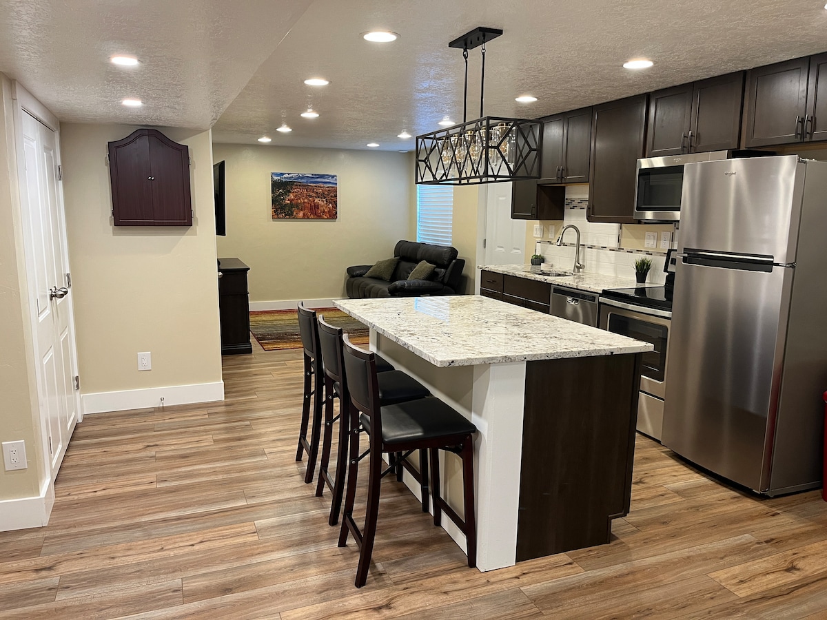 Need a place to relax, reset and unwind? This guest suite with a queen size bed is a perfect place to do all three! Newly constructed and centrally located, this suite is a short drive from downtown or skiing and mountain-based adventures. Don't want to go out? You are in luck as there is everything you need inside this unit. We include a fully stocked Keurig coffee maker, drinks + treats, an ice maker, a mini fridge and even a work station so you can work remotely. NO ANIMALS ALLOWED