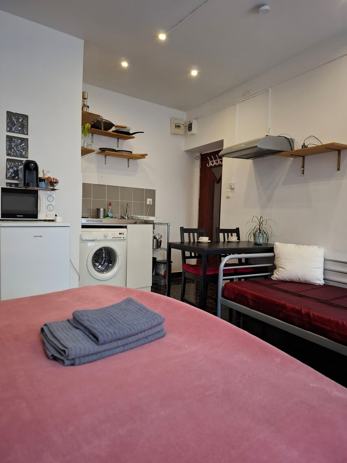 Petit estudi (20 m²) en un semisoterrani a la vora del centre de la ciutat amb bona connexió de transport públic (metro M3, tramvia 4-6, autobús de l'aeroport i altres autobusos). L'apartament està situat en una zona tranquil·la però cèntrica. Pots fer una passejada fins al Danubi. La preciosa plaça Ferenc es troba a 100 metres i està envoltada de restaurants, cafeteries, bars i un parc infantil. Aldi, Corvin Plaza a 5 minuts. No dubtis a enviar-me un missatge si tens qualsevol dubte!