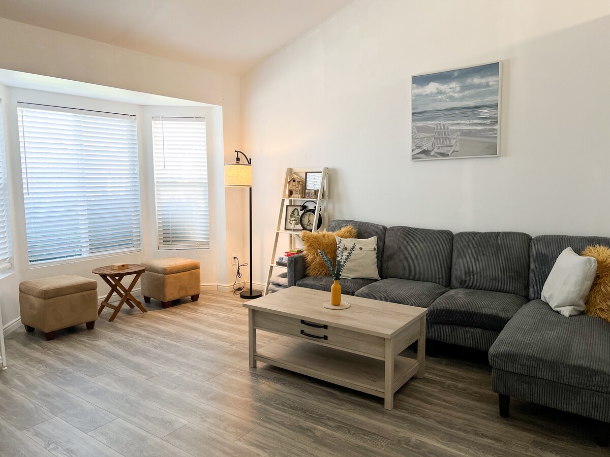 Relaxa't a la nostra suite per a convidats totalment privada! Ofereix una experiència hotelera còmoda a un preu molt més baix. Oferim aparcament a l'entrada, una entrada privada al teu espai, un acollidor llit California King, dutxa de luxe amb pluja, armari, cuina americana, internet de fibra i televisor intel·ligent. Hi ha disponible un llit juvenil i un parc infantil addicionals. Som uns amfitrions fantàstics i fem tot el possible per oferir una estada còmoda, neta, assequible i segura per als nostres hostes.