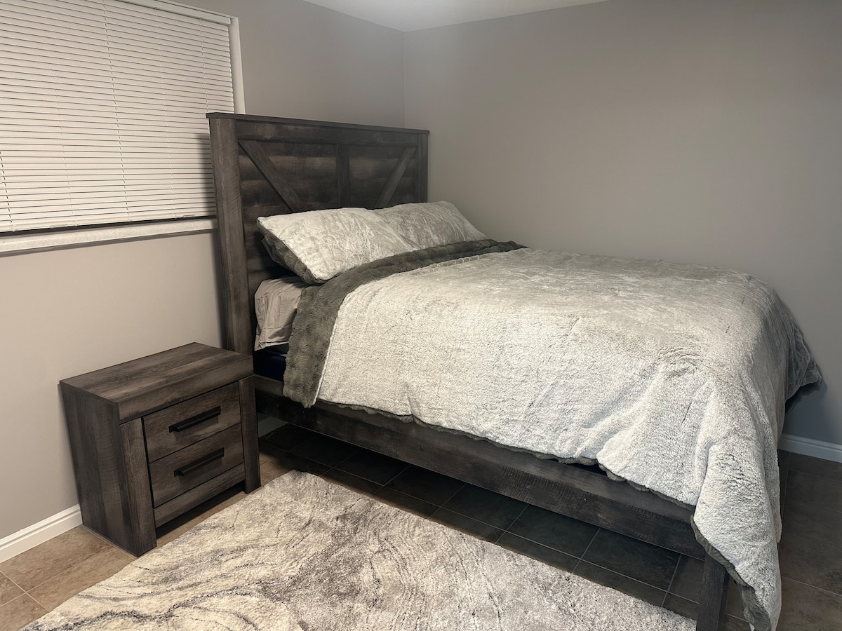 Estem molt contents que estiguis visitant el nostre anunci. Hem remodelat el soterrani per llogar-lo com a lloguer a curt i llarg termini. Perfecte per a un màxim de 4 hostes. És un apartament soterrani preciós, modern i net a West Valley City, UT. Tot és nou. Matalassos d'escuma amb memòria, electrodomèstics de gamma alta, taulell de granit, bany de rajoles, rentadora i assecadora noves i molt més. Pis independent per a tota la privacitat. Vivo a la planta de dalt amb el meu marit, el meu nadó i el meu gos petit. SENSE SALA D'ESTAR. VEURE FOTOS
