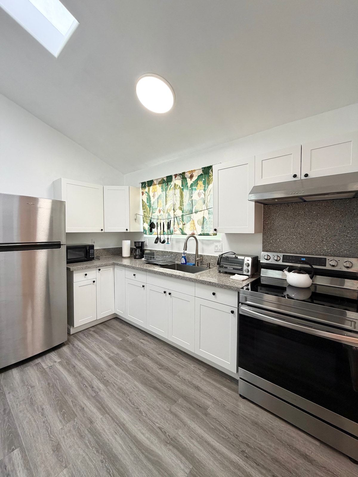Fully furnished with AC & Cal King bed. Newly remodeled kitchen with mango cabinets. Includes induction stove top and small induction oven for some home cooking. Attached private Ohana on the lush hamakua coast. Located in Pa’auhau, “the land of sunshine”, on the southern end of Honokaa. Great spot for exploring North and South Kohala and the Hamakua Coast. Please note My husband builds furniture out of the garage and there is potential for noise between the hours of 9-5 on some days.