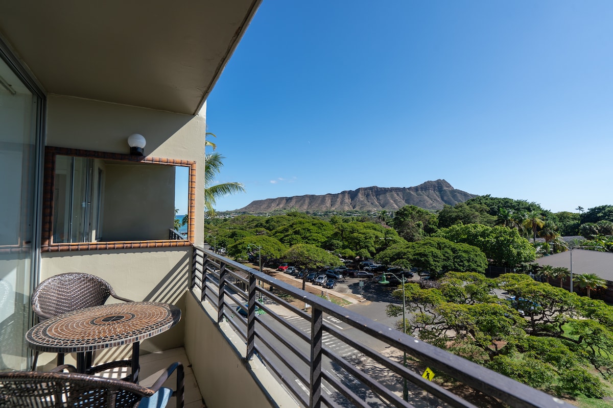 *Aloha! Welcome to the cutest studio in Waikiki!* This is a fully remodeled cute studio with kitchenette in the Hawaiian Monarch. Where everything is walking distance away. Featuring the best Boho style interior design, diamond head and river view, south facing big window, standing desk with monitor and keyboard, 100Mbps wifi speed and projector for 80 inch screen size! NEVER TOO SMALL to have the best stay in Honolulu Update on May 2025, *CHEAP PARKING! And new AC! Parking is $20/day