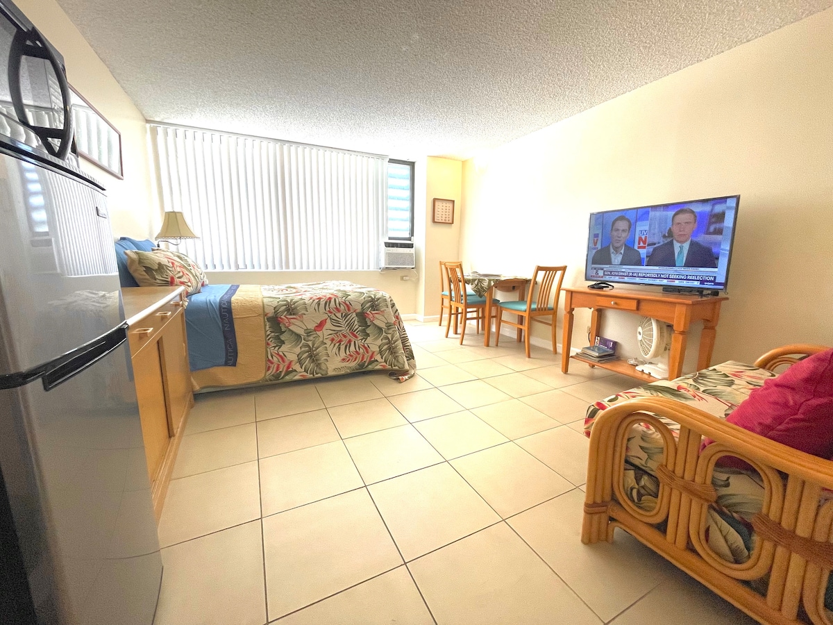 Nova renovació, mobles nous i nous electrodomèstics. Estudi de condomini d'hotel a Waikiki, 5 minuts camina fins a la platja de Waikiki. Excel·lent ubicació per als amants de la platja i l'esport marítim. Convenientment situat, a 10 minuts a peu de qualsevol supermercat, centre comercial i restaurant. Hi ha bugaderies, restaurant, piscina i zones de barbacoa al nostre hotel. El restaurant Ko Tiki Terrace està a punt planta baixa a la piscina. Les sales de bugaderia són els pisos 4, 8 i 12. El llit «king size» és ampli i còmode.