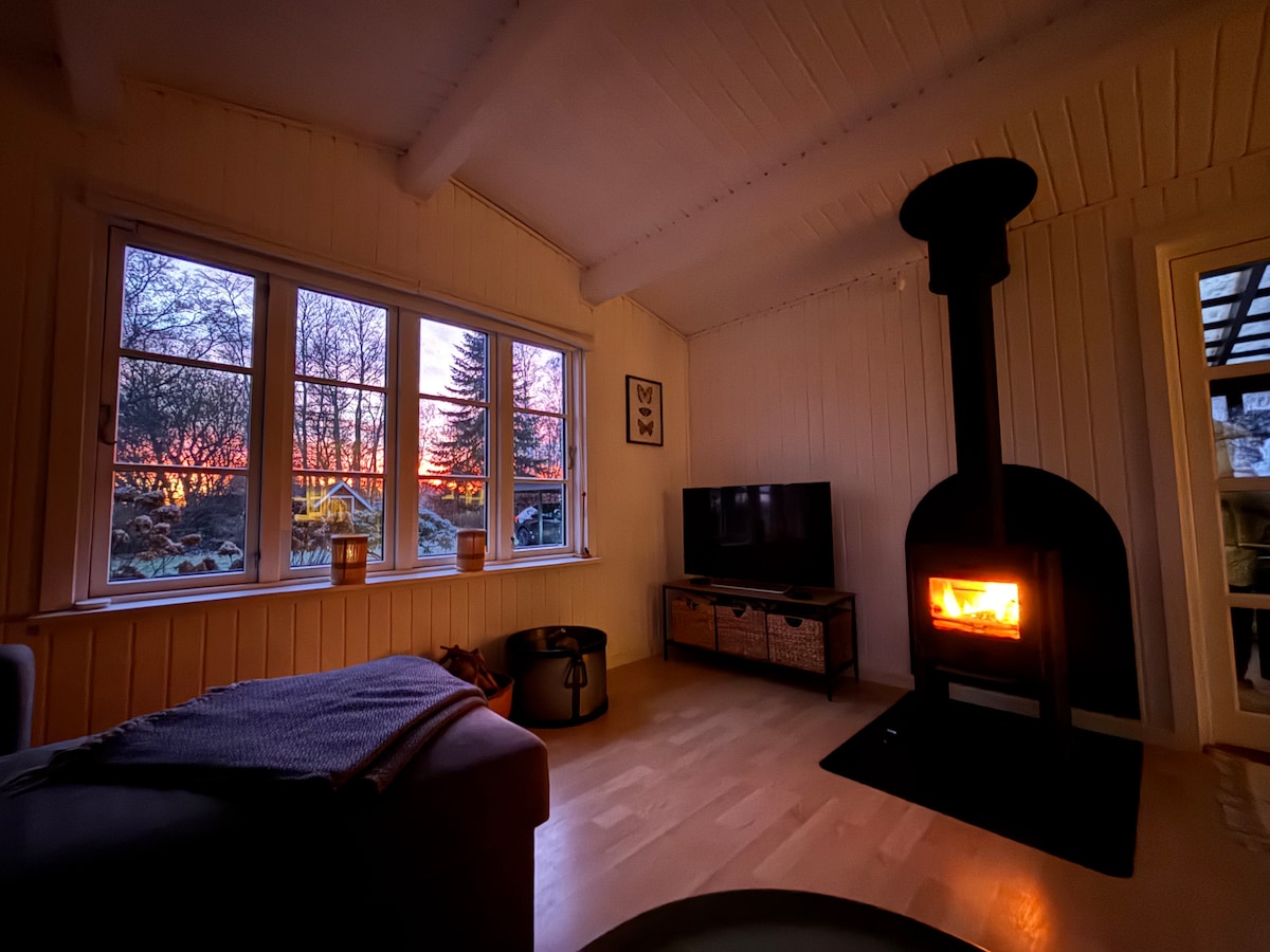 Petita casa rural acollidora per a 2 persones en lloguer a l'encantador Hønsinge Lyng a Vestsjælland. A 900 metres de l'aigua i a prop de minigolf, cases de gel, compres, etc. ⛱ La casa està moblada de manera senzilla: bany, dormitori amb 2 llits i una sala d'estar preciosa, terrassa i jardí encantador. Les 3 habitacions estan separades i totes 3 tenen una entrada des de la terrassa, de manera que has de sortir de cada habitació per entrar a la següent. L'aigua calenta prové d'un escalfador d'aigua de 30 litres. Hi ha una estufa de llenya i una bomba de calor (la calefacció elèctrica es cobra a 50 DKK al dia)