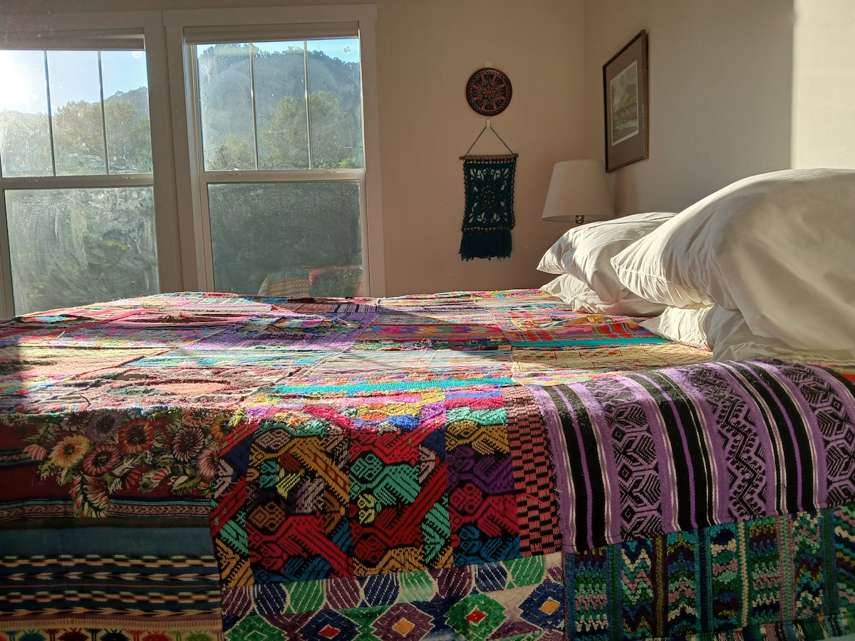 La nostra cabana actualitzada és un lloc fantàstic per escapar i gaudir de la vida entre els arbres i tot el que ofereix Asheville. Els sostres i les finestres amb bigues al voltant deixen entrar la llum natural i donen una sensació interior/exterior. Propietat boscosa d'un acre que es troba a 10 milles del centre de Asheville, rutes de senderisme i totes les muntanyes locals. Una caseta de 2 llits king i 1 bany amb una barreja eclèctica d'ambient rústic bohemi i de muntanya. La nostra casita més petita també es troba a l'allotjament i es pot reservar junts o per separat.