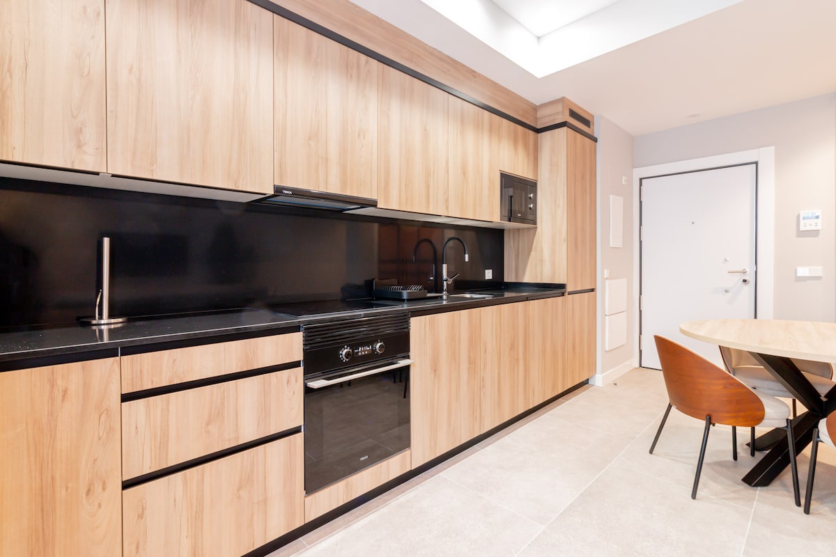 Pis nou amb molta llum. És en un barri tranquil amb botigues i supermercats a prop. Diverses línies d'autobús amb parada a un minut de la casa. Disposes dels estris necessaris per a la teva estada, a més de productes de neteja i menjar de cortesia. Garatge GRATUÏT apte per a cotxes mitjans o petits. Si vols fer servir el carregador de cotxes elèctrics, el cost es pagarà per separat. IMPORTANT: Per estar dins de la M-30, el cotxe ha de tenir una etiqueta ambiental.