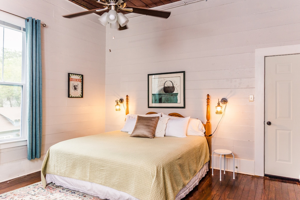 Aquesta suite King d'1 dormitori ofereix un refugi tranquil en un barri històric, a només dues illes del parc nacional de Hot Springs. Renovada el 2020, Ruby Red és una masia de 1900 bellament restaurada amb quatre unitats d'entrada privada. Hem conservat l'encant original: terres de fusta, sostres de 12 peus, a la vegada que hem afegit comoditats modernes per gaudir d'una estada relaxant. Situada a la 2a planta, aquesta suite és la barreja perfecta d'història i comoditat, a pocs minuts del centre de Hot Springs! Reserva ara!