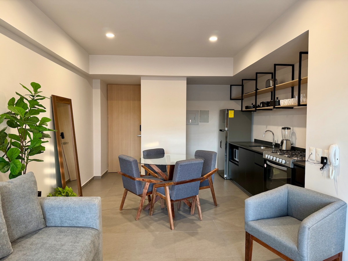 Lujoso departamento en Guadalajara, decorado por el despacho FNisino y con muebles fabricados a la medida por manos tapatías. Hospédate en uno de los edificios más exclusivos y nuevos de Providencia, cerca de la zona financiera, el Bosque Colomos, Punto Sao Paulo y solo a 10 minutos de Andares. Espacio excepcionalmente cómodo, que cuenta con todos los servicios y que te hará pasar una increíble estancia. Cuenta con seguridad 24/7, alberca, gimnasio, coworking y estacionamiento propio.