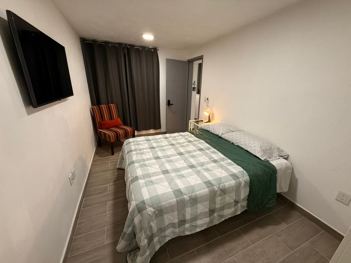 Et dono la benvinguda al meu petit estudi Descobreix My Tiny Studio, una mini casa moderna, privada i totalment independent, dissenyada per ser funcional i acollidora. Aquest estudi compacte ofereix comoditat i estil en un espai reduït perfectament distribuït. Situat en un barri residencial tranquil a Zapopan Sud, a prop del Periférico i envoltat de carrers empedrats, és ideal per desconnectar mentre t'allotges a prop de tot el que necessites. Un espai petit i pràctic creat per a la teva pau i comoditat, una veritable minicasa.