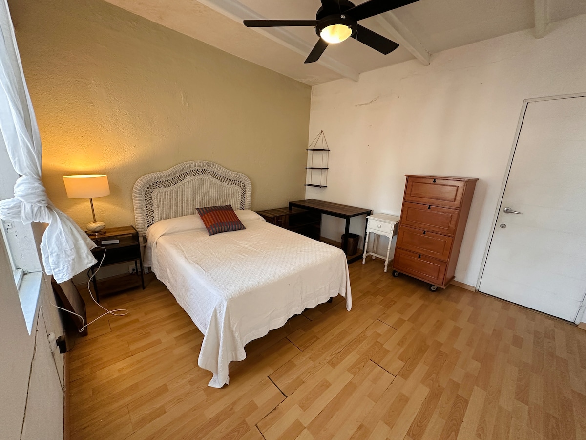 L'opció d'estil de vida a Las Sabilas Guesthouse, aquest pis ple de llum té portes franceses que s'obren a un carrer del barri, una cuina pròpia i un espai abundant per a dos o tres persones. Apte per a Netflix i relaxar-se, fer una migdiada a la tarda després de banyar-se a la piscina o un sopar espontani amb els teus nous amics de Guadalajara. Som simpàtics amb els gais i lesbiana. Tenim altres habitacions a www.airbnb.com/p/lassabilas