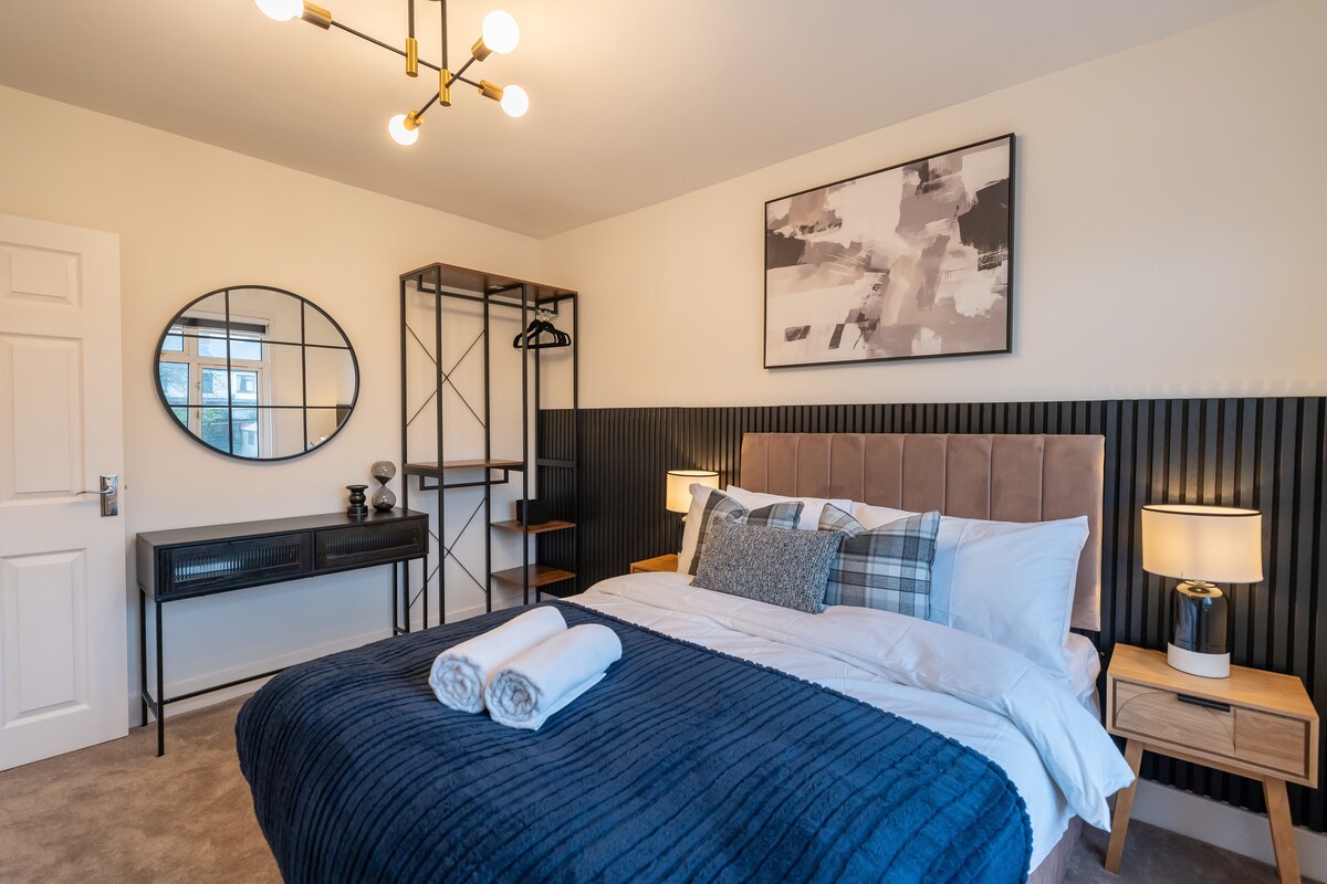 Perfecte per a famílies, grups o viatgers de negocis. A poca distància a peu de botigues, restaurants, menjar per emportar i un parc encantador: tot el que necessites està a la porta de casa teva. L'allotjament es troba a només 6 minuts en cotxe de l'aeroport i del centre de la ciutat, on trobaràs l'estació de tren per desplaçar-te fàcilment amb un servei directe a Londres. Els estudis de Harry Potter són a només 25 minuts. La casa té un jardí per relaxar-se a l'aire lliure i ofereix aparcament privat per a un màxim de 2 vehicles.