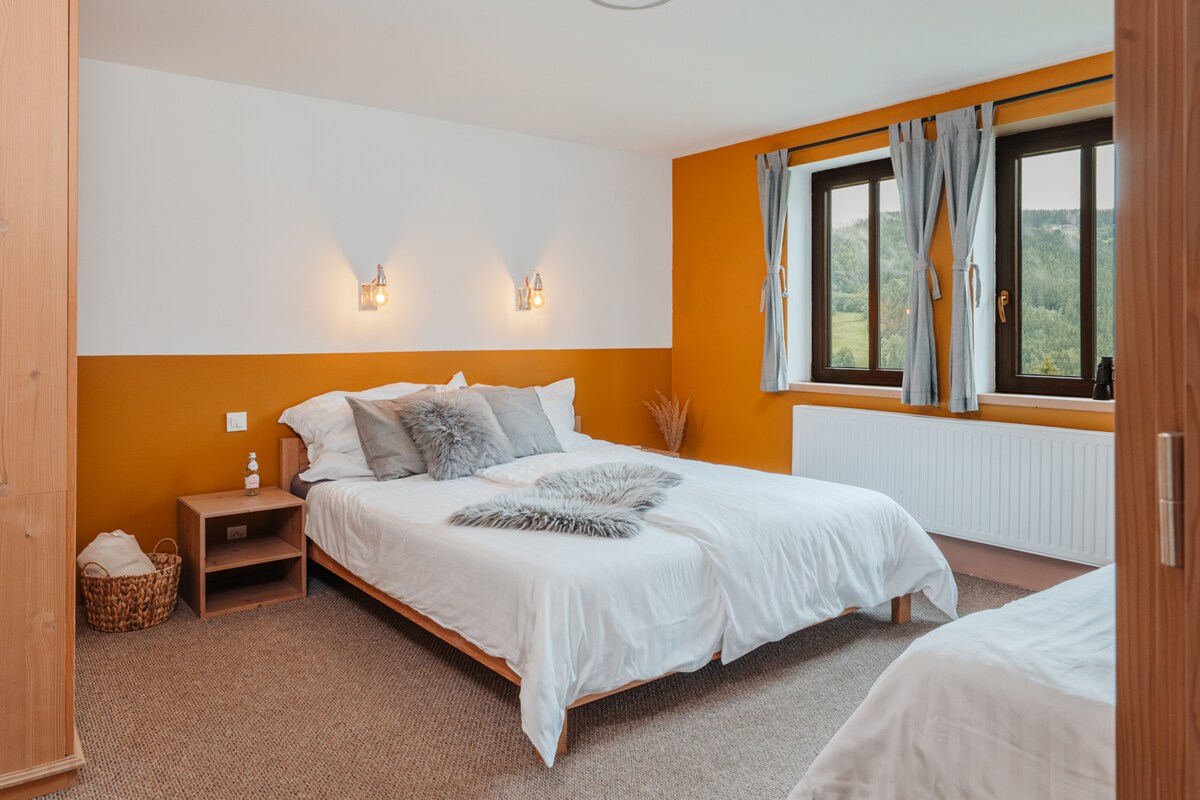 Rezidence Marianka v Mariánské Hoře nabízí stylové ubytování s bazénem, zahradou, terasou a výhledem na Jizerské hory. Hosté ocení plně vybavenou kuchyň, Wi-Fi, TV, moderní koupelnu a toaletní potřeby zdarma. K dispozici je dětská postýlka, hry a knihy. K dispozici skialp hole, nabíječka mobilů a trezor pro vaše cennosti. V zimě si zalyžujete přímo od apartmánu – vlek je hned u domu. Blízko jsou i běžkařské tratě (400 m) a Tanvaldský Špičák (2 km). Nechybí ani sauna a lyžárna s vysoušeči bot.