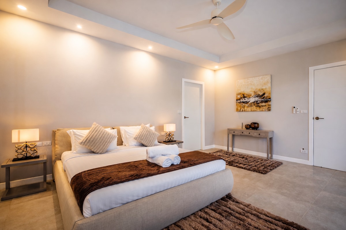 Aquesta vil·la luxosa i molt espaiosa de 3 llits emana comoditat amb un llit Emporer al dormitori principal amb un bany privat ampli amb una pica doble i una dutxa de pluja. El segon dormitori té un llit king i el tercer dormitori té 2 llits individuals grans. La sala d'estar té un sofà gran de 3 peces amb televisor de 65 polzades, Netflix, Spotify i PS 4. La cuina està totalment equipada amb màquina Nespresso, nevera gran i barra llarga amb tamborets de bar. La piscina exterior envolta la terrassa amb mobles per menjar al aire lliure.
