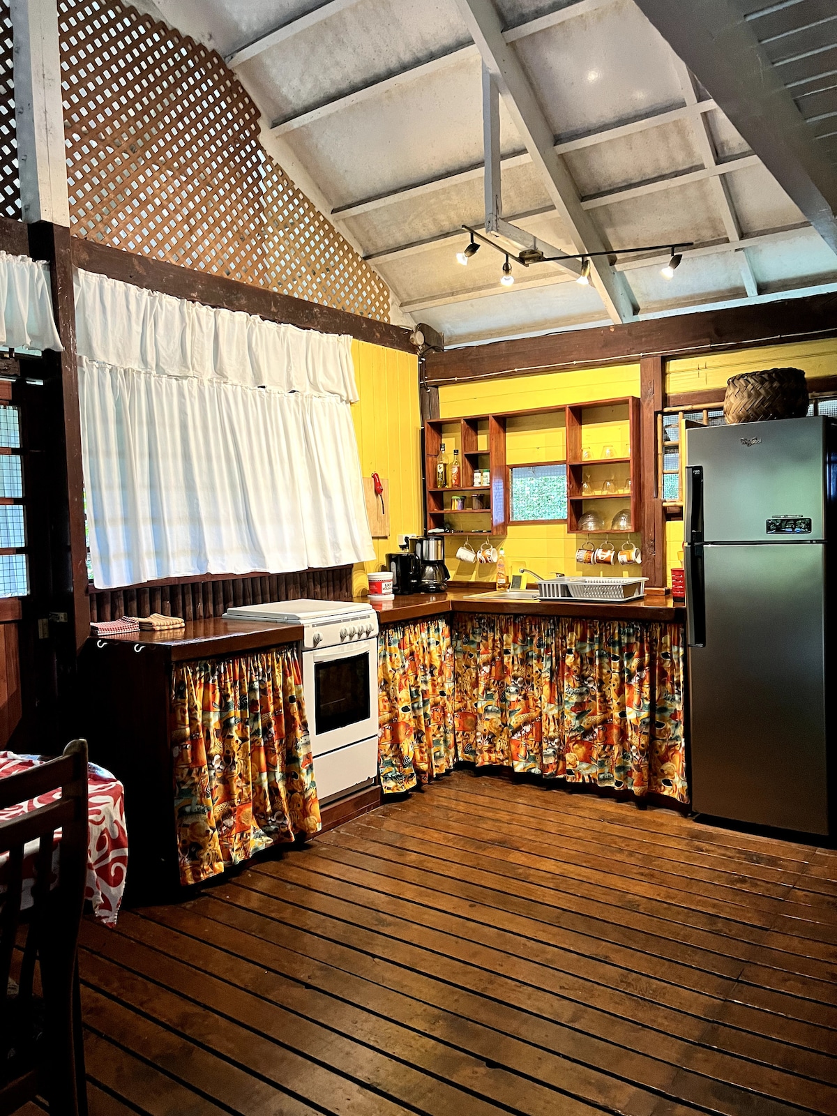 CASA TEVAIPUNA Casa sobre pilotes en un gran jardí tancat, garatge per a un cotxe, terrassa molt gran i espaiosa - dues habitacions amb aire condicionat, cuina equipada, wifi, televisió connectada, a prop de tots els serveis, rentadora disponible, 4 bicicletes de platja (en bastant bon estat). Situat en una zona tranquil·la, a 15 minuts a peu de Fare Quay i a 2 km de l'aeroport. La platja petita és a 10 minuts i la destil·leria és a 5 minuts en bicicleta.
