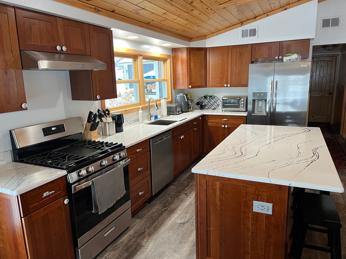 Escapa't a un allotjament de 3 llits i 2 banys a Wellesley Island amb vistes al camp de golf. Els sostres de la catedral i una sala d'estar/cuina de concepte obert ofereixen una vida espaiosa. Gaudeix d'un garatge de 2 parades adjunt, una calçada privada i un carret de golf. Quilòmetres de rutes de senderisme comencen al pati del darrere. Relaxa't a la terrassa amb graella. Perfecte per a famílies, golfistes i amants de la natura, aquest refugi de luxe al camp de golf ofereix relax i activitats a l'aire lliure. Reserva la teva estada ara per gaudir d'un refugi privat a Wellesley Island!