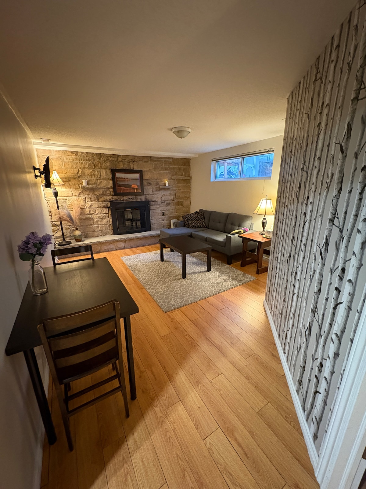 Pis soterrani totalment moblat, de luxe, legal, de dos dormitoris amb electrodomèstics i llits nous. L'apartament té una entrada ampla privada al pati del darrere, orientada al sud, assolellat, amb llar de foc de gas natural, aire condicionat i subflour de fusta per a la comoditat, rentadora privada, assecadora, rentaplats, estufa, electrodomèstics de cuina i nevera. És a prop de Kleinburg Humber River Trail, McMichael Art Gallary i no gaire lluny de Vaughan Mills i Canada Wonderland. Accés fàcil a l'aeroport internacional de Toronto Pearson.