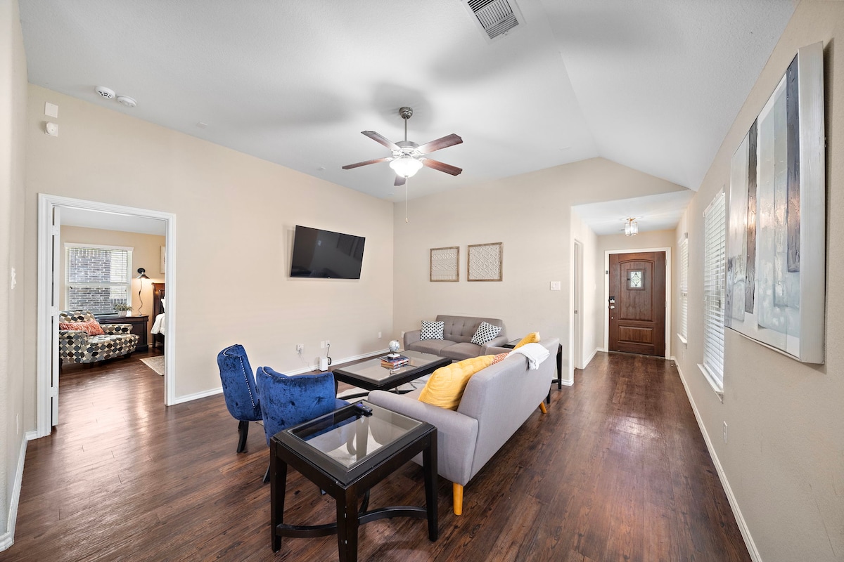 Tot el que necessites per sentir-te com a casa mentre viatges per negocis o per família. Casa moderna a prop de l'aeroport IAH (15 minuts) amb capacitat per a 6 persones. A 13 minuts de The Woodlands Mall, a 12 minuts de botigues i restaurants. L'allotjament disposa de llits «king size» i llits individuals per allotjar hostes de totes les edats. Relaxa't i relaxa't en aquest espai tranquil i elegant.