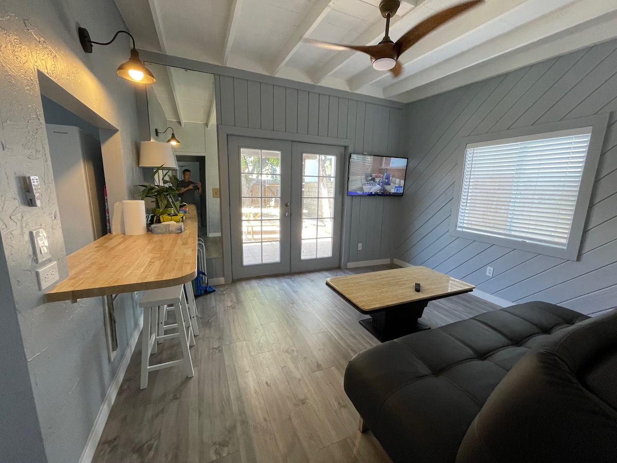 2 bungalous + 2 banys a només ½ milla de la platja, el moll de HB i el carrer principal! El bungalou principal té una cuina completa, un racó menjador integrat, un sofà llit «queen size» i una butaca llit doble. El segon bungalou ofereix un llit «queen size», una cuina petita, una taula per a dos, un sofà i un televisor. Un ampli pati privat connecta amb el menjador, la barbacoa, les ombres de les veles i una acollidora zona de foc. Inclou una plaça d'aparcament fora del carrer, ideal per compartir amb la família o els amics mentre gaudeixes de Huntington Beach.