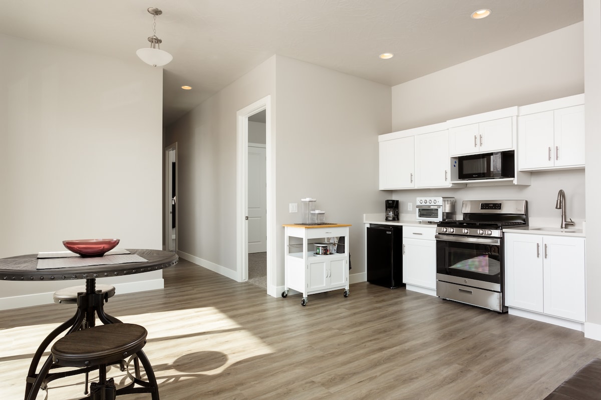 Situat a 30 minuts del parc nacional de Zion, en un carrer molt tranquil. Entorn rural perfecte amb molt de proximitat a restaurants i aventura a l'aire lliure. Relaxa't i relaxa't en aquest espai tranquil i elegant. Construït el 2023 amb acabats d'alta gamma sense res estalviat, des dels electrodomèstics i el mobiliari fins a la roba de llit. Entrada sense claus amb garatge privat per al pis. L'apartament està a sobre del garatge de la casa nova amb escales privades i accés. Terrassa gran per seure i gaudir de les vistes.