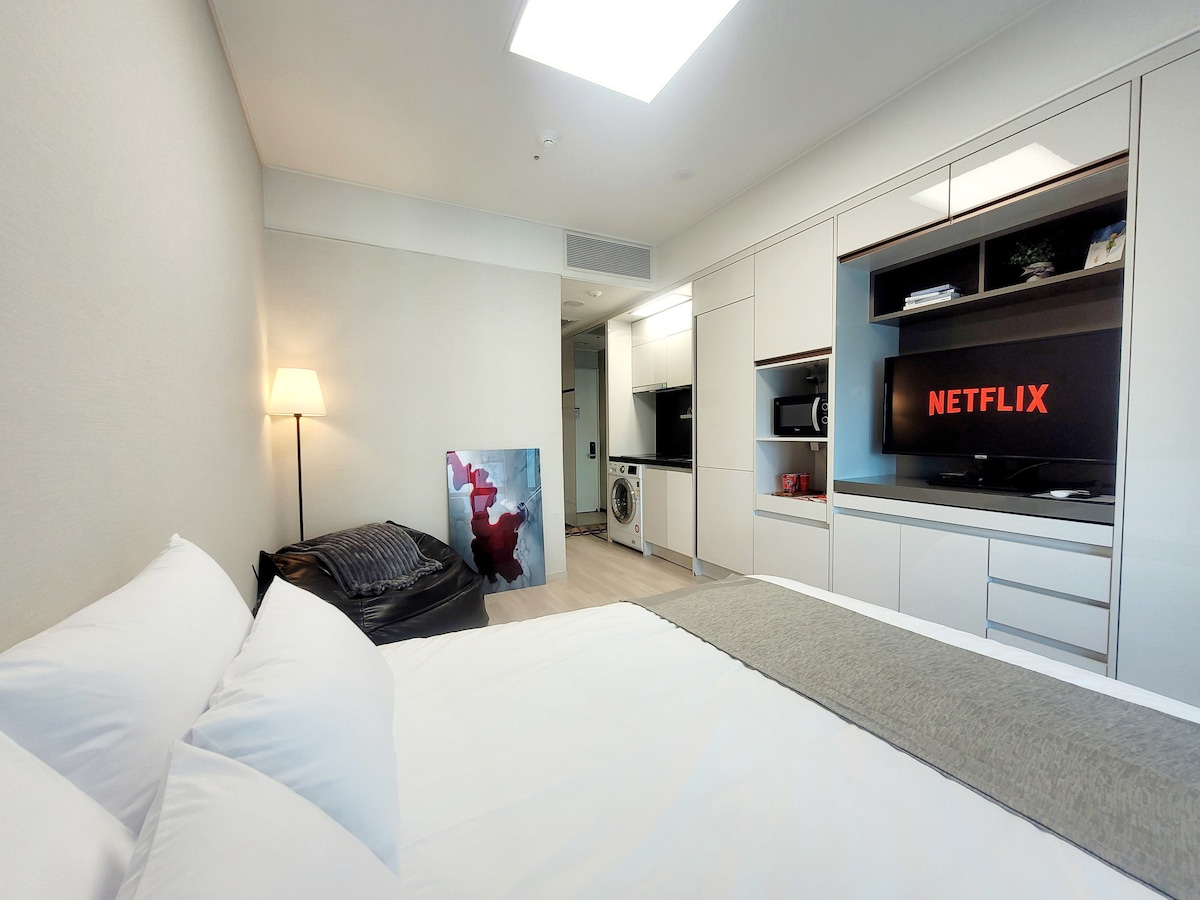 메리어트스테이#마약매트리스#웰컴스낵#역1분#호텔침구,타월#65"스마트TV#넷플릭스#디즈니+