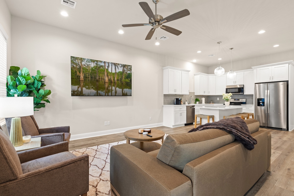 Entra i relaxa't a la nostra espaiosa casa de 3 dormitoris i dos banys amb planta oberta amb el llit principal i bany privat dividit a un costat de la casa i els altres dos dormitoris i bany a l'altre costat. El dormitori principal té un llit «king size» i els altres dos dormitoris tenen llits «queen». Cada habitació està equipada amb un televisor intel·ligent Samsung i l'allotjament disposa d'internet d'alta velocitat i cable Cox. El barri és molt familiar. Assegura't d'escoltar el camió de gelats que passa!
