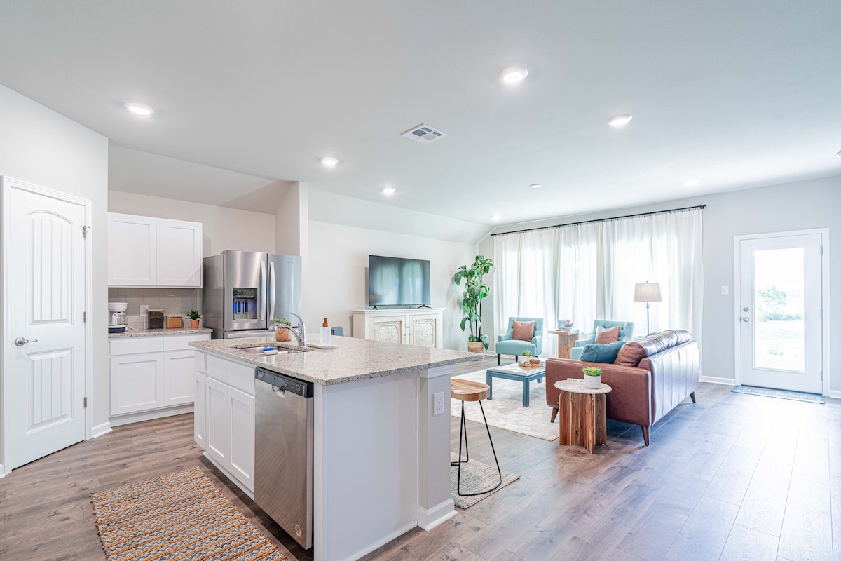 Entra i relaxa't a la nostra espaiosa casa de 3 dormitoris i dos banys amb planta oberta amb el llit principal i bany privat dividit a un costat de la casa i els altres dos dormitoris i bany a l'altre costat. El dormitori principal té un llit «king size» i els altres dos dormitoris tenen llits «queen». Cada habitació està equipada amb un televisor intel·ligent Samsung i l'allotjament disposa d'internet d'alta velocitat i cable Cox. El barri és molt familiar. Assegura't d'escoltar el camió de gelats que passa!