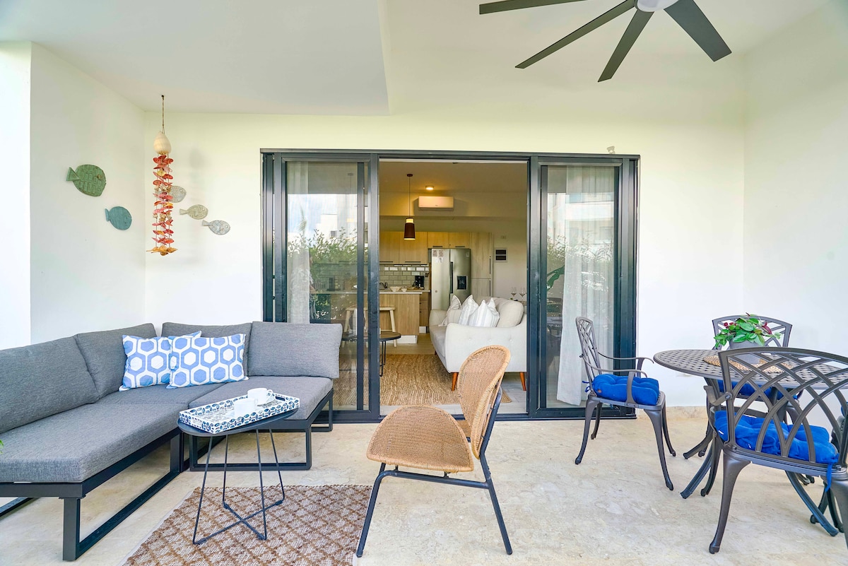 Gaudeix de l'equilibri perfecte entre platja, comoditat i diversió! A pocs minuts de les millors platges de Punta Cana: Macao (10 min), Bibijagua i Los Corales, ideals per banyar-se, fer esports aquàtics o gaudir de bars i restaurants davant del mar. A prop de Scape Park, Sacred River Park, Coco Bongo i del centre de Punta Cana. Inclou un kit de platja, 12 kWh/dia d'electricitat i accés a una guia digital amb recomanacions locals. Ideal per a famílies, parelles i nòmades digitals. 🌴